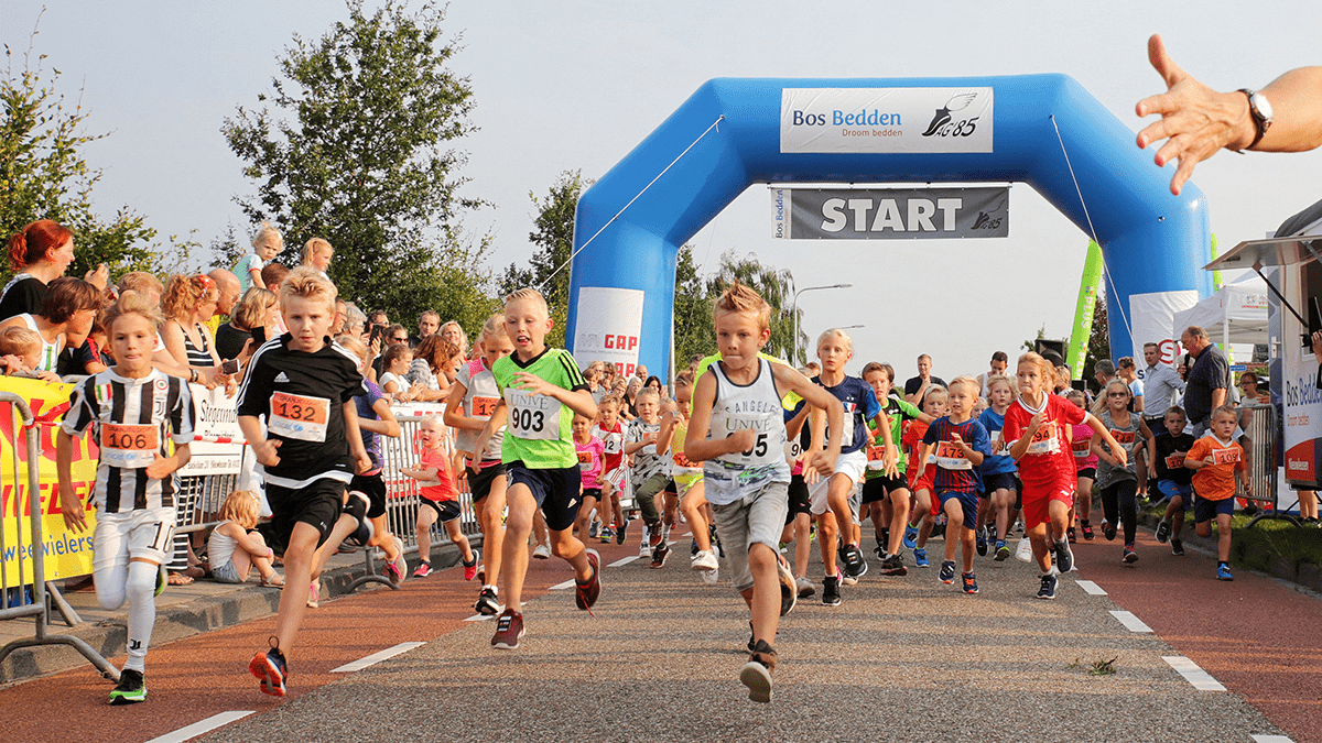 Om 19.15 uur is de start van de Bos Bedden Run over 10 km. De deelnemers aan de GAP Run (5 km) starten 5 minuten later zodat het publiek twee wedstrijden tegelijkertijd kan bekijken en, ook niet onbelangrijk, tot het laatst hun aanmoedigingen kan laten horen!