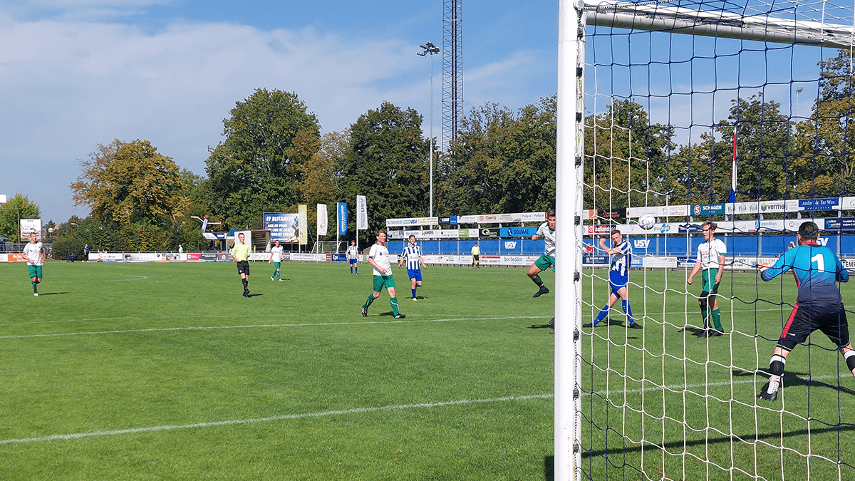 In de drukkende najaarswarmte had USV eigenlijk steeds de bal, maar hele grote kansen leverde dat niet op. Het bleef bij schoten van Leon Kooiker en Niek Ekkelenkamp. Wel tussen de palen, maar net te hoog. Omdat DSC ’65 voorin nooit echt gevaarlijk werd, leek de wedstrijd zonder hoogtepunten naar de rust te kabbelen. Het tempo was laag, een tikje tam allemaal. Maar in de 40e minuut kwam USV dan toch op voorsprong. Jort Kouwen gaf vanaf rechts de voorzet op Leon Kooiker. En op zijn stuitbal had doelman Youri Vendrig geen antwoord (1-0).