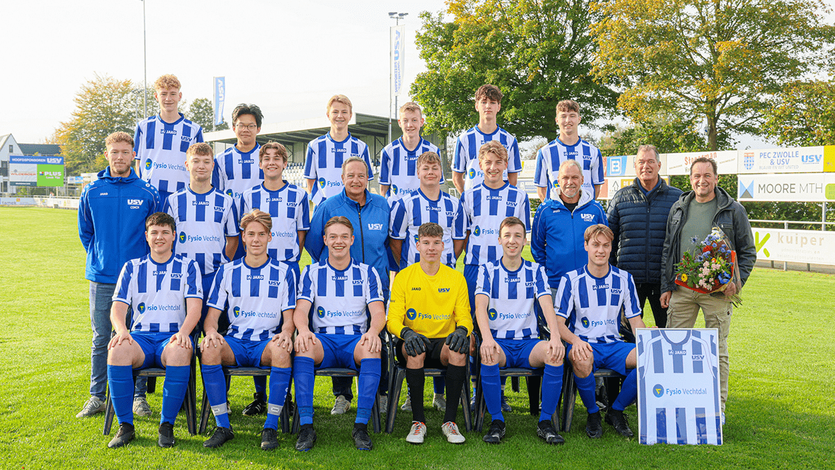 NIEUWLEUSEN – Een drietal teams van USV werd vorige week in het nieuw gestoken. Namens de sponsorcommissie van USV spraken Jan Willem Wildeboer en Dick ten Klooster hun dank uit richting de aanwezige tenuesponsoren Peter Dam (Fysio Vechtdal), Rudie Brasjen (RB Las & Montage) en Jelle Scholten (Schippers Bouwcenter) voor hun betrokkenheid bij de club.