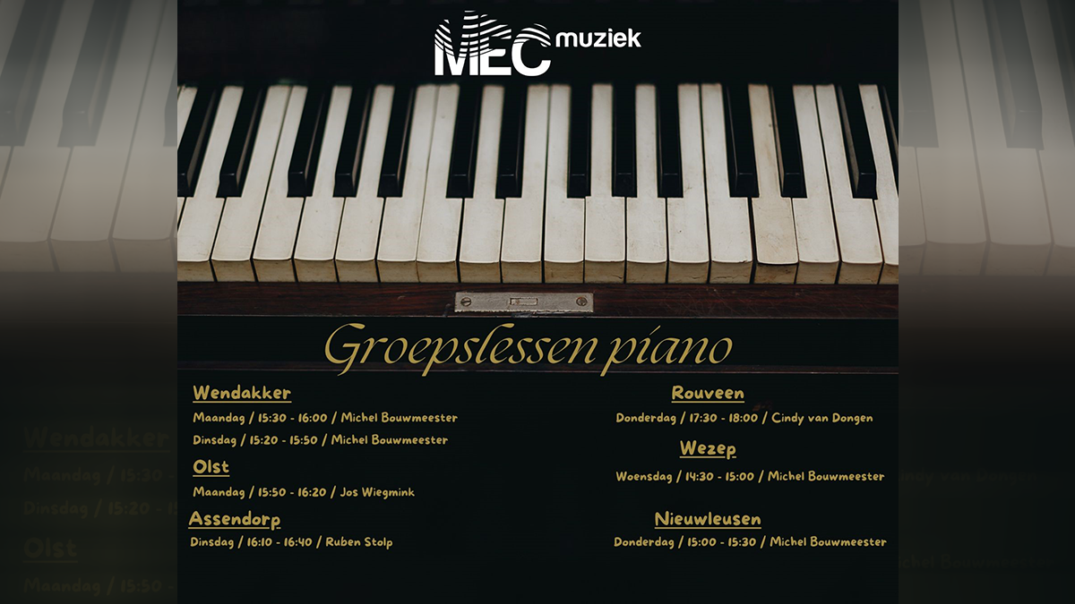 Deze maand staan de pianolessen extra in de aandacht. De volgende groepen gaan nieuwe starten na de herfstvakantie: