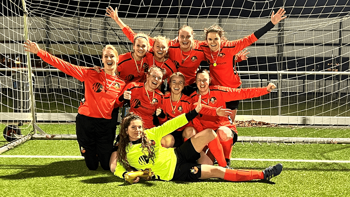 NIEUWLEUSEN – S.V. Nieuwleusen heeft sinds dit seizoen maar liefst vier vrouwenteams, waaronder twee zeventallen. Eén van deze twee zeventallen is nieuw sinds dit seizoen, VR18+. Met succes wisten zij in de eerste helft van het voetbalseizoen het kampioenschap te behalen!