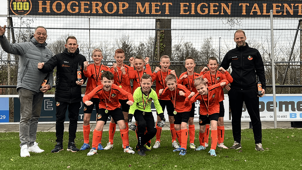 De laatste competitiewedstrijd op zaterdag 7 december werd overtuigend afgesloten met een 8-0 overwinning op Rohda Raalte JO11-2. Om kampioen te worden waren we afhankelijk van de laatste wedstrijd van Berkum, die werd gespeeld op zaterdag 14 december. Alleen bij winst kon Berkum nog over ons heen. Na veel scrollen op de zaterdagochtend in de voetbal app kwam het verlossende resultaat dat Berkum had verloren met 6-5 van JCLE, waardoor S.V. Nieuwleusen JO11-1 zich als kampioen mocht kronen van de 1e klasse!