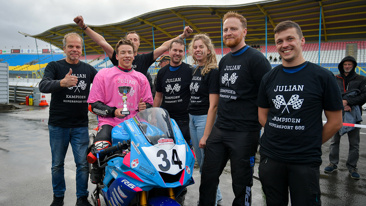 Van Kalkeren was na elf races in het kampioenschap de beste. De strijd bleef spannend tot en met de laatste meters van van Kalkeren in de laatste race van het seizoen. Van Kalkeren had zaterdag de eerste race gewonnen voor concurrent van Steenbergen, waardoor hij de leiding in het kampioenschap weer overnam. Bij winst in de tweede race zou van Kalkeren kampioen zijn, mocht hij tweede worden dan kon het ook nog, mits van Steenbergen niet de snelste raceronde klokte. De tweede race was nat, een scenario waar van Kalkeren geen liefhebber van is. Van Steenbergen nam dan ook de leiding en zette een snelle tijd neer. Van Kalkeren voelde zich echter steeds beter in de regen en dacht halverwege de race, ik ga in de laatste ronde alles of niets geven voor het kampioenschap. Het werd alles, hij hield de motor op het asfalt en zette, 10 seconden na de finish van racewinnaar van Steenbergen, de snelste raceronde neer (goed voor 3 extra punten) en werd zo met miniem verschil kampioen van 2025. “Race één was pushen pushen en race twee moest ik anticiperen op van Steenbergen,” kijkt van Kalkeren terug op de wedstrijddag “Toen ik mijn vader in de uitloopronde zag staan met het kampioensshirt  kwamen de emoties. Ik ben ook veel dank verschuldigd aan het team voor het prachtige seizoen”.